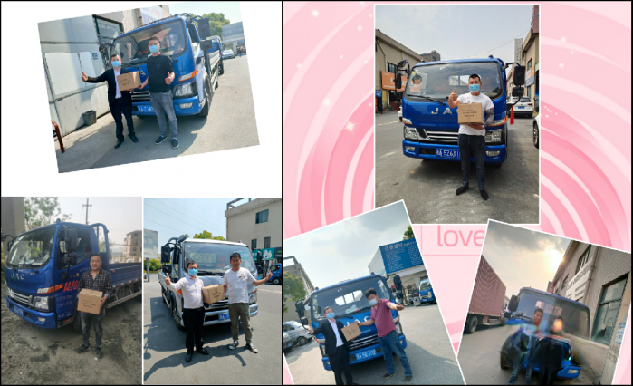 一直以來(lái),駿鈴杭州福通4S店與當(dāng)?shù)乩滏湣⑥r(nóng)產(chǎn)品大客戶(hù)均保持著良好的合作。在了解到客戶(hù)防疫物資缺乏、貨車(chē)司機(jī)運(yùn)輸過(guò)程中缺少物資的情況后,駿鈴杭州福通4S店迅速組織采購(gòu)防疫及生活物資,包括一次性口罩、消毒水、濕巾、方便面、礦泉水等,然后第一時(shí)間送到了相關(guān)運(yùn)輸公司手中。