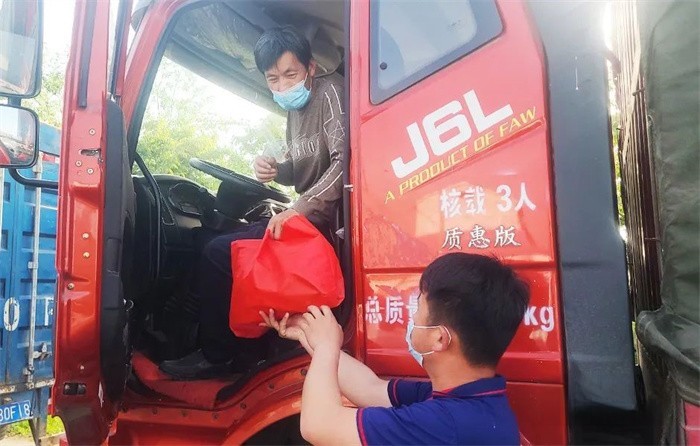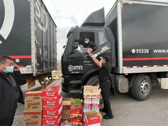 4月2日,解放400客服接到了一位卡友的來電:運送物資的車隊滯留在青島萊西的高速口2天,車內已經沒有吃的了,希望能得到幫助。4月以來,出于疫情防控的需要,外地車輛進出萊西區域各高速出入口需要接受嚴格的檢查。運送防疫物資的順豐車隊,因為排隊等待下高速,已經在高速口滯留兩天時間了,車內也都斷水斷糧。解放客服了解到車隊的救援請求后,馬上聯系到山東商代處幫助處理。山東商代處立刻指派車隊所在區域的經銷商青島金海超前往高速口救援,青島金海超馬不停蹄地趕往車隊的臨時停靠地,將水和食物搭配好,一輛車接著一輛車交到車隊卡友手中。車隊卡友收到準備齊全的生活物資后,紛紛表示感謝,同時也感動于解放經銷商能在車隊已經離開滯留地的情況下,還能繼續趕來為車隊送上物資。有一位車隊卡友更是感慨道:“沒想到一個電話解放公司能這么重視,而且能慰問整個車隊,為解放大愛精神感動!”
