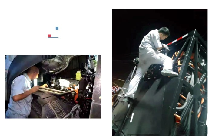 為了確保其它車輛不出現同類問題,他建議對其余49輛車全部進行排查。承擔起排查重任,瞿雄和同伴們頂著烈日一輛輛車拆卸掉厚重的保護罩,檢修完好后再將保護罩裝好。汗水一遍遍浸透工裝,“雖然很辛苦,但我們交付客戶的車輛不能有任何問題。” 瞿雄說道。服務小分隊自進駐客戶廠區以來,工作中真正做到了隨叫隨到、24小時全天候服務。