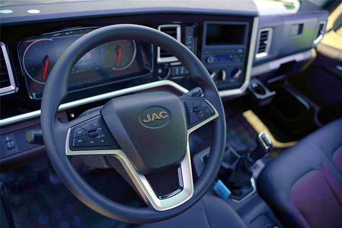 內飾配置方面,駿鈴金飯碗應有盡有。人體工學設計的座椅包裹性好,靠背和扶手支持多角度可調,配合四向可調方向盤,駕駛員可以輕松調整到舒適坐姿。巴斯德高品質氣囊減震充放氣速度快,乘坐舒適性好。中控臺整體向駕駛員一側傾斜,各種按鈕更易操作。多功能方向盤集成了常用的藍牙、定速巡航、音量調節等功能,行車操作更安全。后視鏡電動調節、電加熱,倒車雷達、倒車影像等實用功能也都有配置,日常運輸更好用。