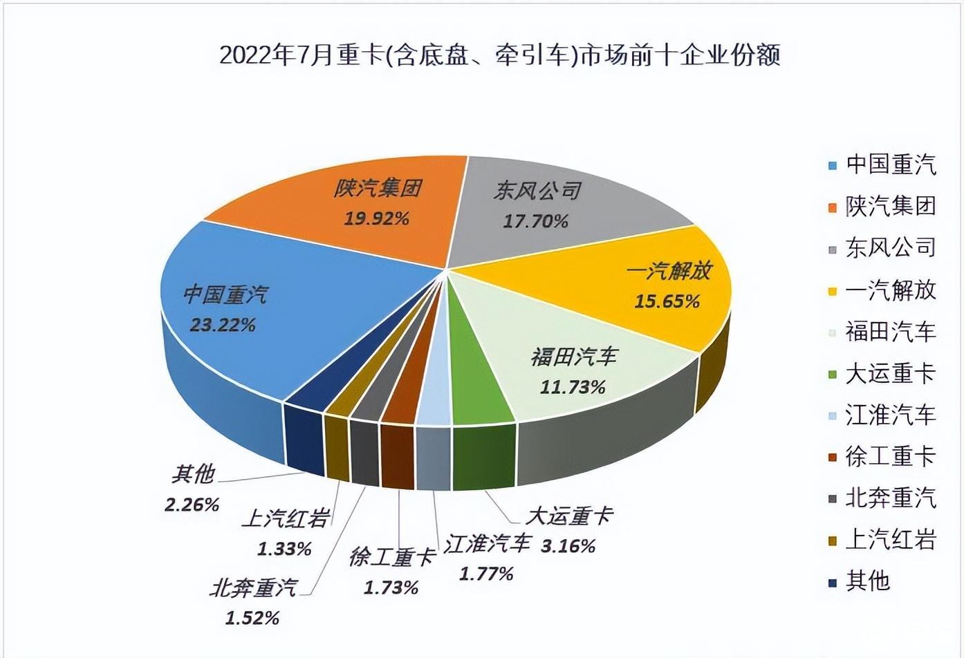 2022年7月重型卡車(含底盤、牽引車)市場銷量表(單位:輛)