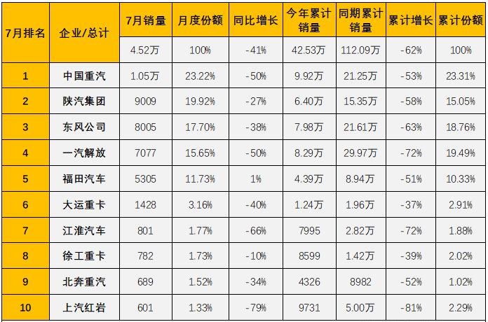 7月重卡銷量破萬,中國重汽一枝獨(dú)秀繼續(xù)強(qiáng)勢領(lǐng)跑