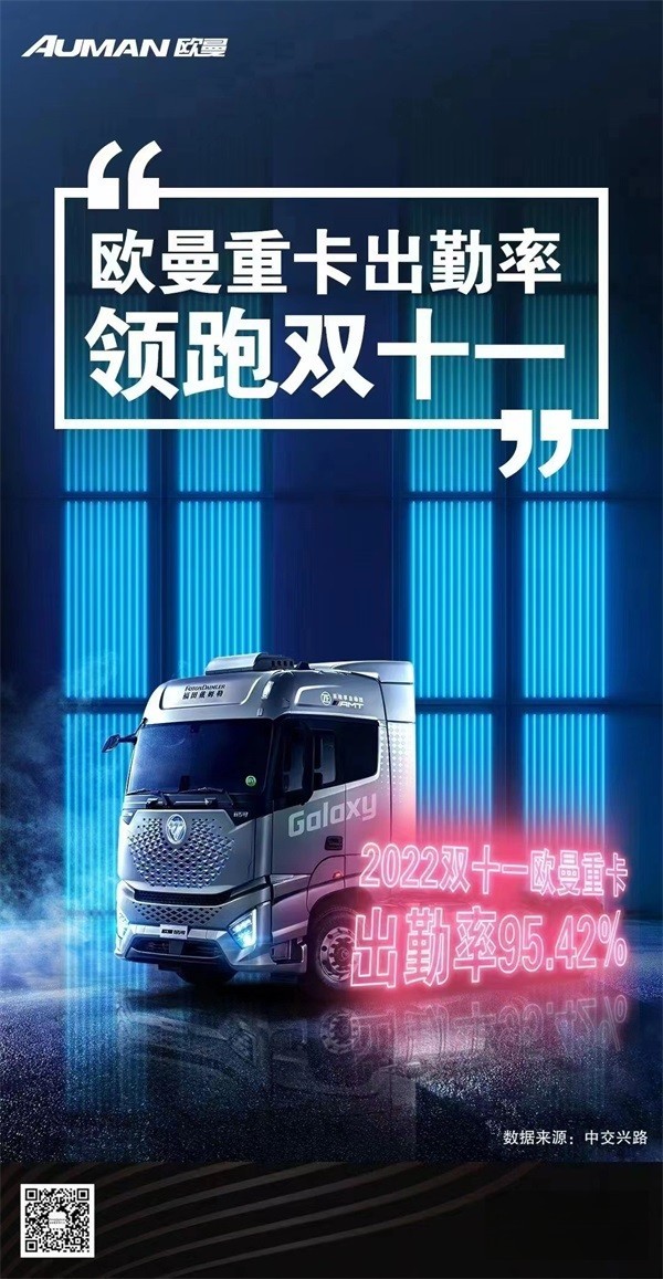 據數據顯示,2022年雙十一期間,歐曼累計在全國32個省區共啟動了872條運輸路線,歐曼重卡的全國平均出勤率高達95.42%,其中在湖北省鄂州市、四川省攀枝花,新疆石河子,海南省五指山、云南迪慶、麗江,貴州六盤水,西藏昌都、遼寧本溪,青海果洛等11省97個市縣,出勤率達到了100%;在廣州、東莞、金華、上海等地區出勤率達到了95%-99%,在出勤率方面,放眼全國市場,歐曼重卡已經走在了行業前列。