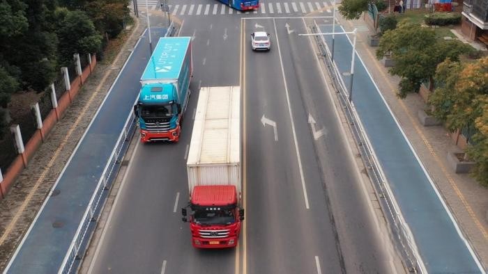 據悉,該條線路覆蓋了多條繁忙的社會開放道路,有多個紅綠燈路口,行人、機動車和非機動車混行,還有公交車靠邊停車和路邊臨時停車等多種復雜的交通路況,對智能重卡的障礙物識別、感知預判、安全剎停等能力都有很大的挑戰。