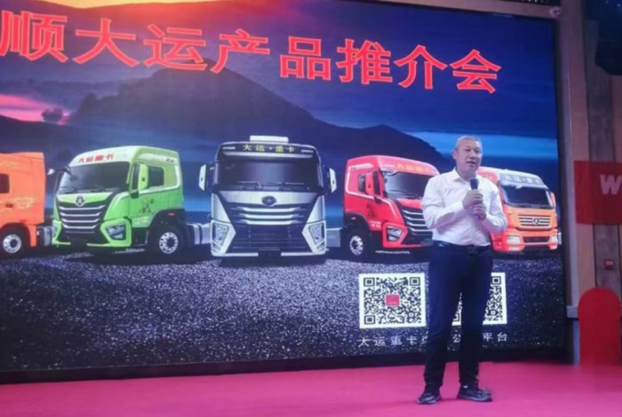 隨后大運重卡河南區域銷售經理張琪對大運產品進行了詳細解讀,他從嚴格的產品生產質量管理體系、優越的產品性能、自重、節油及行業領先優勢等給到場客戶進行了詳細講解;售后服務經理李陽從產品售后到用車無憂,向客戶宣貫大運關愛不處不在的服務理念,贏得了現場客戶的一致好評。