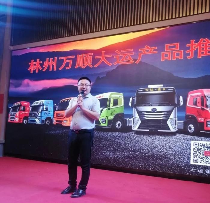活動開始,分別由大運重卡河南大區經理倪世界和林州萬順總經理李懷軍致開場辭,感謝林州當地卡友多年以來對大運重卡的支持。大運重卡在林州地區深耕11年,在當地有不錯的口碑和客戶基礎,這次活動大運重卡帶來了燃氣車的全系V7、N8E、N9H產品來滿足當地客戶的不同需求,并給客戶定制了優惠的購車方案。