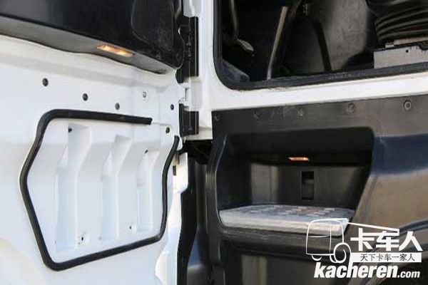 這個(gè)X設(shè)計(jì)除了讓威龍重卡系列產(chǎn)品具有更好的辨識(shí)度以外,其實(shí)更有很多實(shí)際功能,比如集成式大燈外圈為C形的日間行車燈,中間則集成了遠(yuǎn)近光、示廓燈、轉(zhuǎn)向以及霧燈,這也讓產(chǎn)品無論在各種路況和天候中行駛,都具有相當(dāng)?shù)淖R(shí)別度。而保險(xiǎn)杠采用的分體式設(shè)計(jì),能夠降低日常使用當(dāng)中車輛的使用成本,一旦發(fā)生輕微剮蹭,用戶只用更換某一個(gè)組件即可,而不是更換整個(gè)保險(xiǎn)杠。前臉保險(xiǎn)杠上還設(shè)計(jì)有兩級(jí)的蹬車踏板,方便日后駕駛員對(duì)擋風(fēng)玻璃進(jìn)行擦拭。