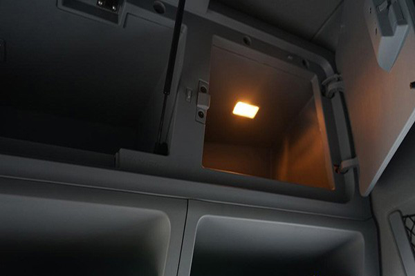 空間上,東風天龍KL載貨車的駕駛室高度接近2米,達到了站立的標準,駕駛員在室內移動更加方便靈活。前頂雜物盒空間也進行了優化再利用,方便長途行駛的駕駛員放置行李。側圍也增加工具箱,整個駕駛室儲物空間提升至486升,完全可以滿足2000km長途旅行生活物品儲存需求。